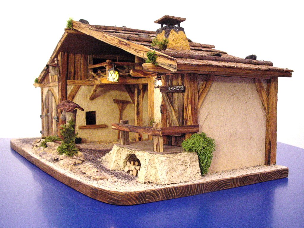 Einzelanfertigung mit Beleuchtung und Zubehör. Hergestellt in reiner Handarbeit aus überwiegend naturverwittertem Holz.
